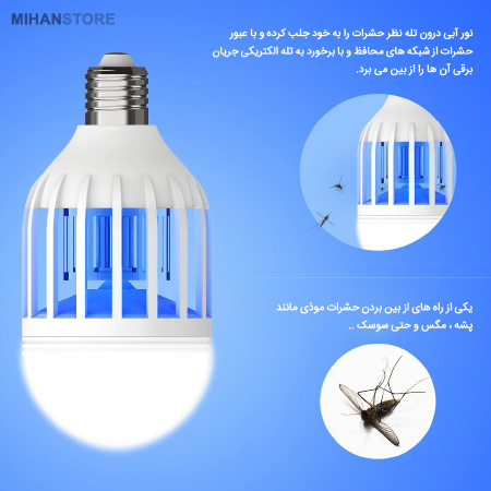 لامپ حشره کش برقی مدل زپ لایت محصولی بسیار کارآمد برای هر مکانی می باشد. این لامپ دو کاره هم به عنوان یک لامپ ساده کم مصرف اما پر نور قابل استفاده است و هم به عنوان لامپ حشره کش فلورسنتی که می توان هم به سرپیچ سقفی پیچ کرد و هم به سرپیچ های رومیزی. لامپ حشره کش زپ لایت را می توانید در منزل، حیاط، اتاق خواب، باغ، محل کار، رستوران ها و ... استفاده کرد. زاویه نور دهی لامپ 120 درجه و نور سفید با پایه E27 می باشد. این محصول با ایجاد نور بنفش حشرات موذی را به خود جذب کرده و پس از برخورد حشره با قسمت داخلی لامپ ازبین می رود. با داشتن این محصول خارق العاده دیگر نیازی به استفاده از سموم و حشره کش های شیمیایی مضر و حساسیت زا نخواهید داشت.
