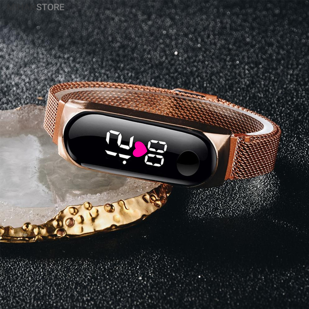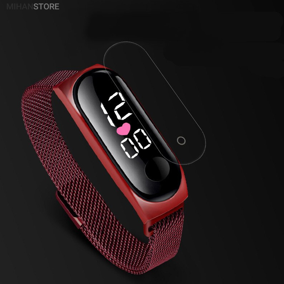 به شمار می رود. ساعت مچی LED طرح شیائومی دارای صفحه ی نمایش دیجیتالی بوده و زمان لمس کردن صفحه ساعت، صفحه نمایش محصول با جلوه ویژه خاصی و با چراغ های LED سفید (یخی) رنگ ساعت را برای شما نمایش می دهد. این ساعت امکان نمایش تقویم روز را نیز دارد. ویژگی دیگر این محصول بند مگنتی و بسیار شیک آن است که قفل آن هرجایی که شما تنظیم کنید به صورت آهنربایی به بند زیرین متصل خواهد شد.