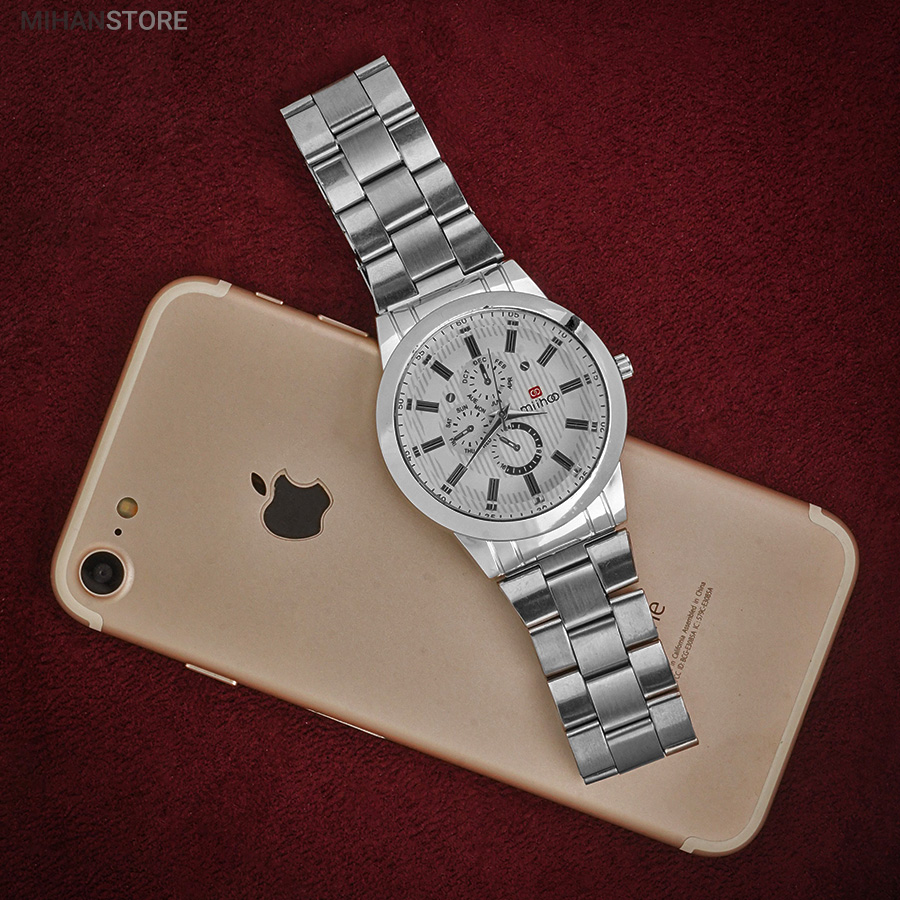 ساعت مچی مردانه MIHOO TIGER یک ساعت شیک فلزی با بند بافت فلزی با رنگ نقره ای در رده ساعت کلاسیک اسپرت می باشد و تکمیل کننده استایل خاص شما خواهد بود. این ساعت طرح 3 موتوره می باشد و بسیار خوش ساخت و با کیفیت تولید شده است، این محصول همراه با یک جعبه شکیل ارسال خواهد شد.