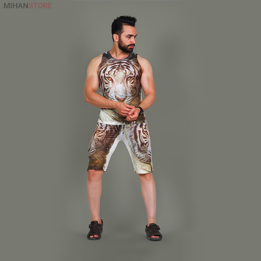 امروزه آقایان به دنبال لباس هایی راحت و در عین حال شیک و خوش استایل هستند که در منزل یا خارج از منزل هنگام مسافرت، باشگاه یا ... استفاده نمایند. ست رکابی و شلوارک مردانه Tiger در عین حال که بسیار متفاوت است، جزو فانتزی ترین ست ها می باشد و فوق العاده با کیفیت بوده و راحتی بی رقیب آن، این محصول را بی شک پوشاک محبوب شما خواهد کرد. این ست با جنس ریون درجه یک، سبک و خنک مناسب سایز (مناسب برای سایز های مدیوم و لارج) عرضه شده است.