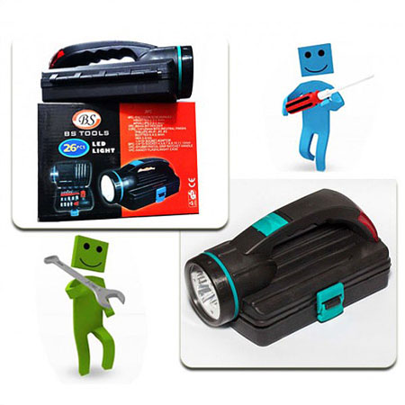 دارای چراغ قوه بسیار قوی و 26 قطعه پر کاربرد
